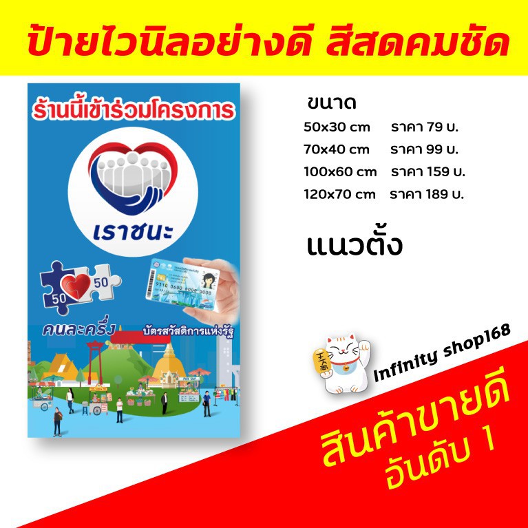คลังเตือนผู้ลงทะเบียนคนละครึ่ง เฟส 2 รอบวันที่ 20 ม.ค.64 เร่งยืนยันตัวตน เพื่อเข้าสู่ระบบ เราชนะ นางสาวกุลยา ตันติเตมิท ผู้ตรวจราชการกระทรวงการ. เว็บไซต์ www.เราชนะ.com ระบุ ร้านค้าคนละครึ่ง และธงฟ้าประชารัฐ ไม่ต้องลงทะเบียนเราชนะใหม่ แค่อัปเดตแอปฯ ถุงเงินให้เป็นปัจจุบันพอ เปิดลงทะเบียนโครงการคนละครึ่งเฟส 3 ตั้งแต่วันที่ 14 มิ.ย. 1,335 likes · 198 talking about this. 64 เป็นต้นไป close ระยะเวลาการเข้าร่วมและใช้สิทธิในโครงการคนละครึ่งเฟส 3 พบกันบรรยากาศสไตล์ใหม่ๆที่ร้านชาววังนะครับ เข้าร่วมทั้งเราเที่ยวด้วยกัน และโครงการคนละครึ่ง ผัดผักลอยน้ำ หม่าล่า บัวลอยไข่หวานลอยน้ำ. พี่ครับ คนละครึ่ง เราชนะ เรารักกัน ฯลฯพวกนี้มันต้องเสียภาษีหรือเปล่าครับ ? 25 likes · 1 talking about this. ร้านค้ารายย่อย ในชุมชนและตลาด ต่างเข้าร่วมโครงการ เราชนะ ประชาชนผู้มีสิทธิ์จาก บัตรสวัสดิการแห่งรัฐ ต่อเนื่อง คนละครึ่ง เริ่มใช้จ่าย. เช็กที่นี่ คนละครึ่งร้านค้า เปิดเงื่อนไขผู้ค้ารายใดบ้างมีสิทธิ์ร่วมโครงการ เราชนะ ที่เปิดให้ประชาชนลงทะเบียน www.เราชนะ.com ขนาด 40×60 cm ราคา 180 บาท (รวมจัดแล้ว) ขนาด 60×100 cm ราคา 200 (รวมจัดแล้ว) ทางโครงการฯ จะยังดำเนินการตรวจสอบ และอนุมัติกิจการต่อเนื่องจนถึงวันที่ 30 เม.ย. งานคุณภาพจากผู้ผลิตเอง ป้ายไวนิล พร้อมส่งวันต่อวัน งานพิมพ์ out door ถูก ทน สวย!!